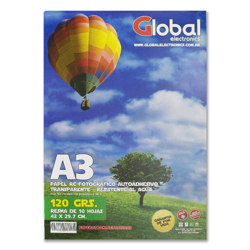 $ 8.094,00Global A3 120 Grs Film Adhesivo Transparente X 10 Hojas