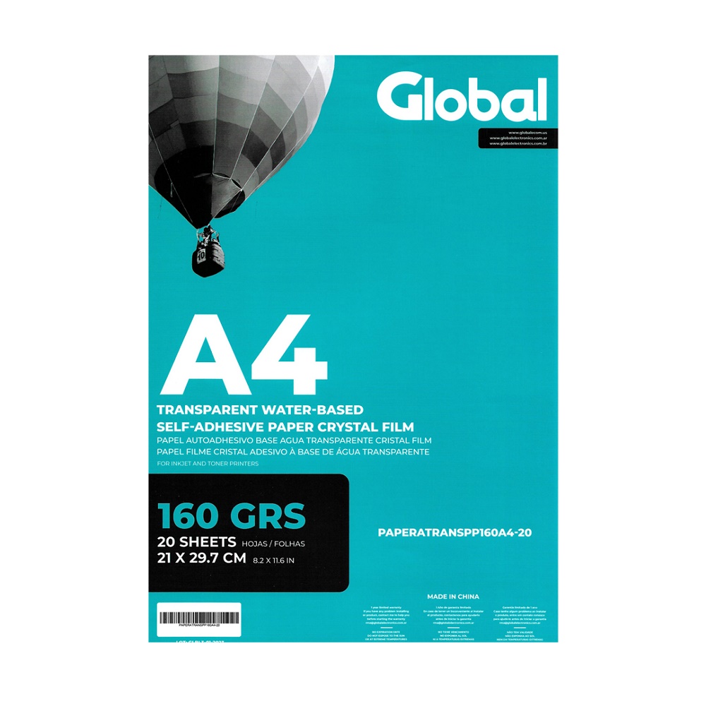 $ 22.551,00Global A4 120 Grs Film Adhesivo Transparente X 10 Hojas