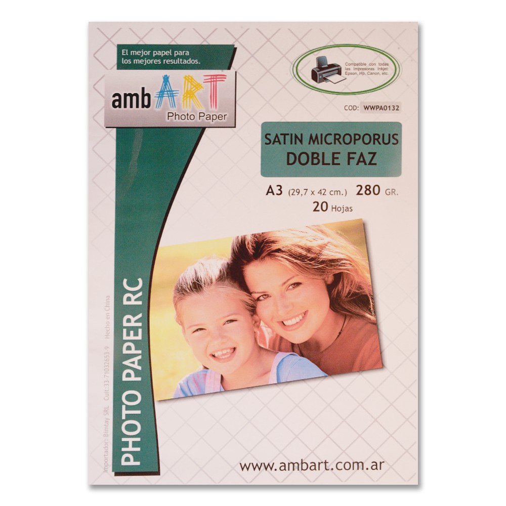 Ambart A3 280 Grs Microporoso Bifaz Satin X 20 Hojas