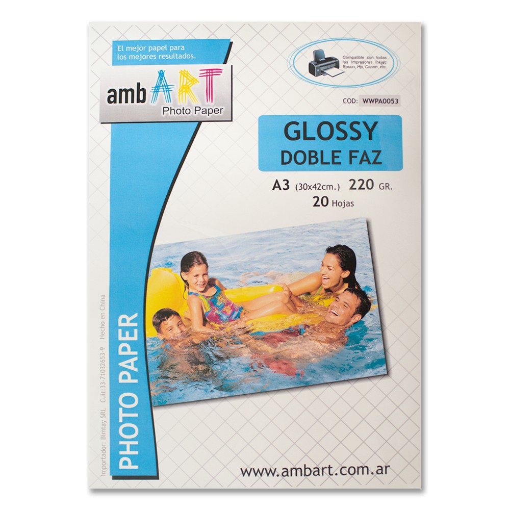Ambart A3 220 Grs Fotografico Glossy Bifaz X 20 Hojas